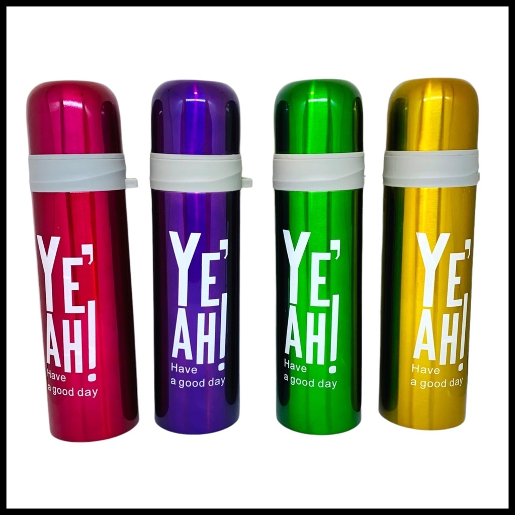 Botella de acero inoxidable con diseño yeah.